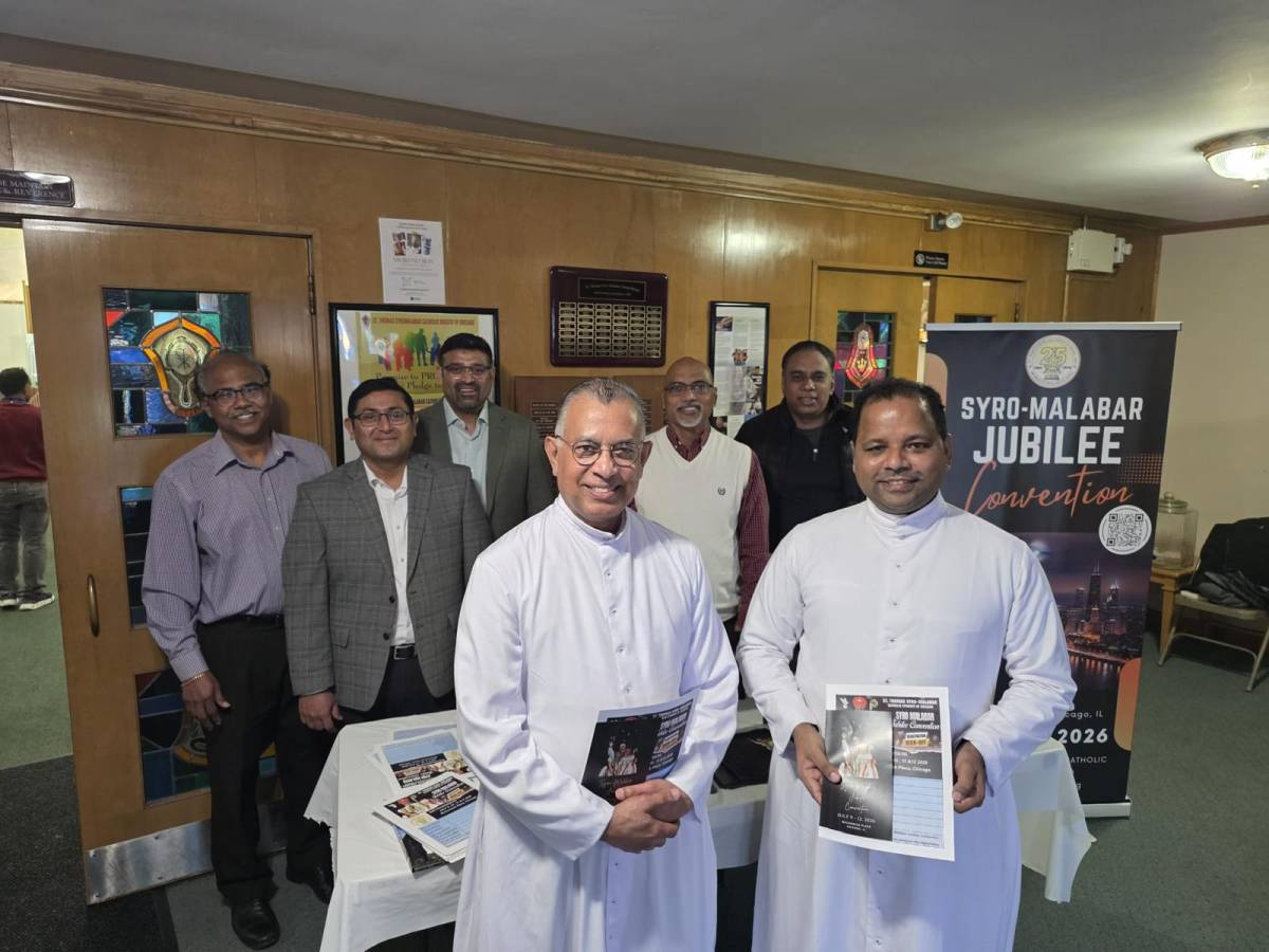 ചിക്കാഗോ: അമേരിക്കയിലെ സീറോ മലബാർ രൂപതയുടെ സിൽവർ ജൂബിലി ആഘോഷങ്ങളുടെ ഭാഗമായി 2026 ജൂലൈ 9 മുതൽ 12 വരെ നടക്കുന്ന ദേശീയ കൺവെൻഷന്റെ പ്രചാരണത്തിനും കിക്കോഫിനുമായി ജൂബിലി കൺവീനർ ഫാ.ജോൺ മേലേപ്പുറത്തിനോടൊപ്പം സെൻ്റ് തോമസ് സീറോ മലബാർ ദേവാലയം സന്ദർശിച്ച കൺവെൻഷൻ ടീമിന് സ്നേഹപൂർവ്വമായ സ്വീകരണം ഇടവകാംഗങ്ങൾ നൽകി.