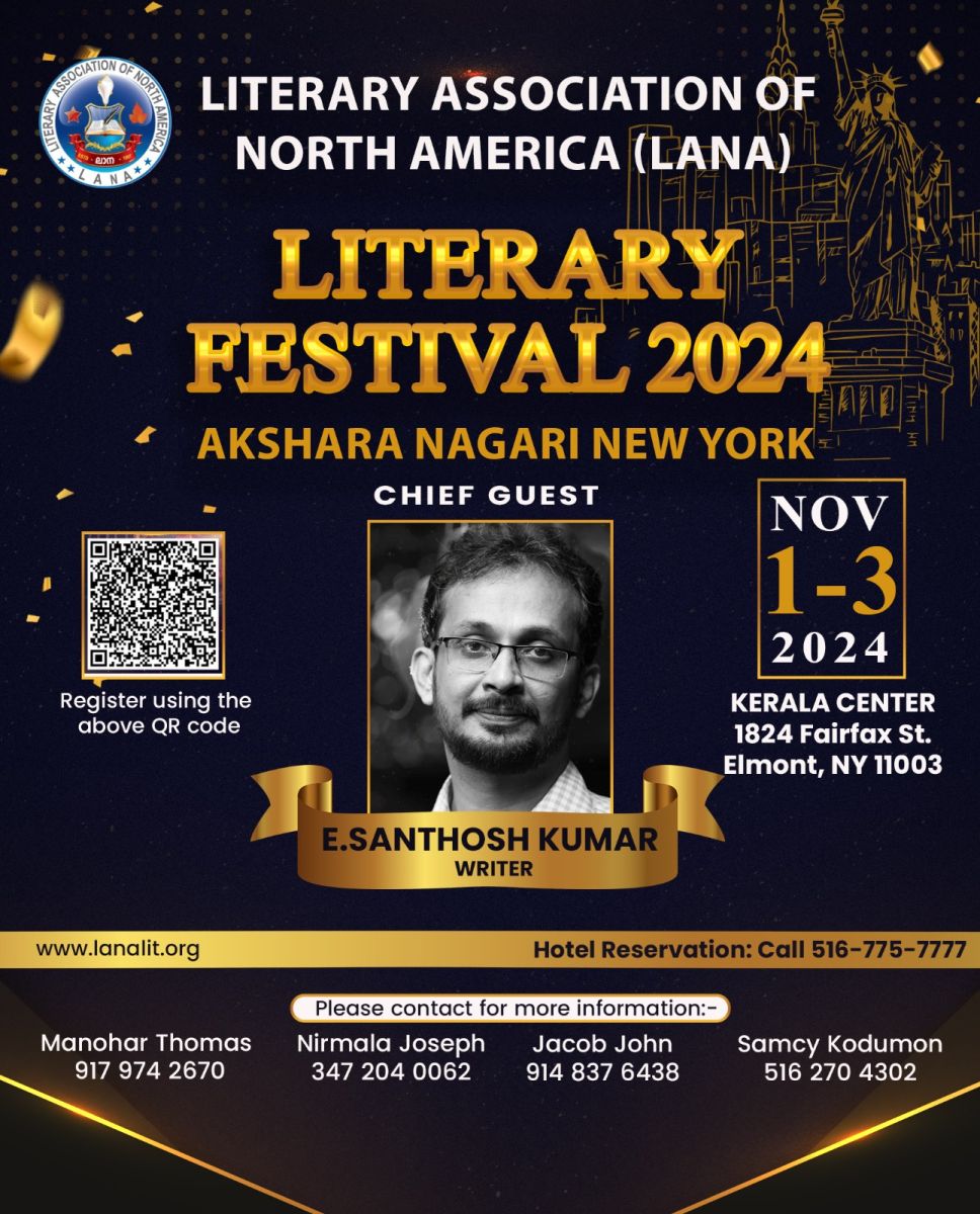 ന്യൂയോർക്ക്;ലിറ്റററി അസോസിയേഷൻ ഓഫ് നോർത്ത് അമേരിക്ക (LANA) യുടെ പ്രാദേശിക സമ്മേളനം ന്യൂയോർക്കിലെ അക്ഷര നഗരിയിൽ നവംബർ ഒന്നു മുതൽ മൂന്നു വരെ നടത്തപ്പെടുന്നു. ന്യൂയോർക്കിലെ കേരളാ സെൻറ്റർ ആണ് അക്ഷര നഗരിയായി അണിഞ്ഞൊരുങ്ങുന്നത്. മലയാളത്തിലെ പ്രമുഖ എഴുത്തുകാരൻ ഇ. സന്തോഷ്കുമാർ മുഖ്യാതിഥിയായി എത്തിച്ചേരുന്ന സമ്മേളനത്തിൽ നോർത്ത് അമേരിക്കയിലെ മലയാളി എഴുത്തുകാരുടെയും സാഹിത്യ പ്രേമികളുടെയും വലിയ നിരതന്നെ പങ്കെടുക്കും.