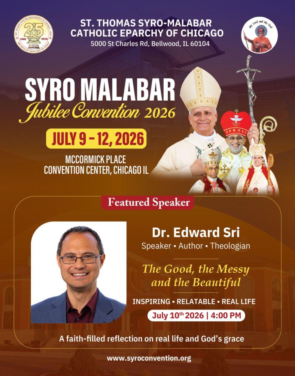 ചിക്കാഗോ: ചിക്കാഗോ സെന്റ് തോമസ് സീറോ മലബാർ രൂപതയുടെ രജതജൂബിലി ആഘോഷങ്ങളുടെ ഭാഗമായി സംഘടിപ്പിക്കുന്ന 'സീറോ മലബാർ ജൂബിലി കൺവെൻഷൻ 2026' ജൂലൈ മാസത്തിൽ നടക്കും. ചിക്കാഗോയിലെ പ്രശസ്തമായ മക്കോർമിക് പ്ലേസ് കൺവെൻഷൻ സെന്ററാണ് (McCormick Place) ഈ മഹാസംഗമത്തിന്വേദിയാകുന്നത്.2026 ജൂലൈ 9 മുതൽ 12 വരെ നടക്കുന്ന ഈ സംഗമത്തിൽ മുഖ്യ ആകർഷണമായി പ്രശസ്ത ദൈവശാസ്ത്രജ്ഞനും ഗ്രന്ഥകാരനും വാഗ്മിയുമായ ഡോ. എഡ്വേർഡ് ശ്രീ (Dr. Edward Sri) മുഖ്യപ്രഭാഷണം നടത്തും.